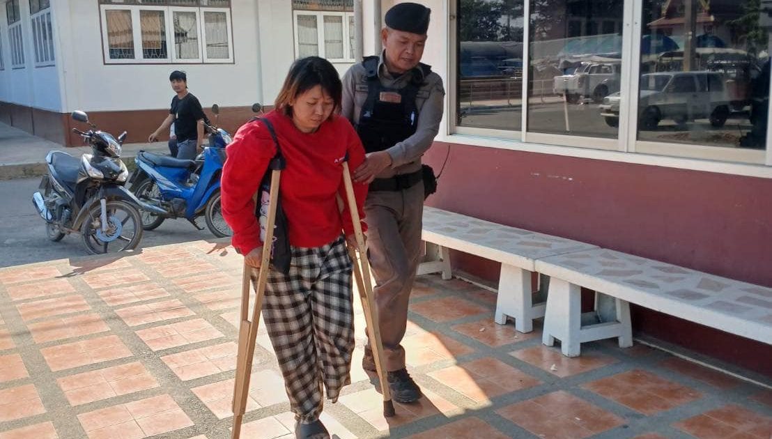 เจ้าหน้าที่ตำรวจบริการให้การช่วยเหลือผู้พิการจากอุบัติเหตุ