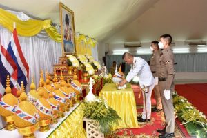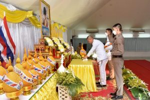 รอบเย็น เวลา 18.00 น. พ.ต.อ.ขวัญชัย เผือกพูนผล ผกก.สภ.ท่าวุ้ง ร่วมพิธีถวายเครื่องราชสักการะและวางพานพุ่ม และพิธีจุดเทียนถวายพระพรชัยมงคล เนื่องในวันเฉลิมพระเกียรติสมเด็จพระบาทสมเด็จพระเจ้าอยู่หัว เนื่องในโอกาสวันเฉลิมพระชนมพรรษา 28 กรกฎาคม 2568 ณ หอประชุมอำเภอท่าวุ้ง จ.ลพบุรี