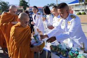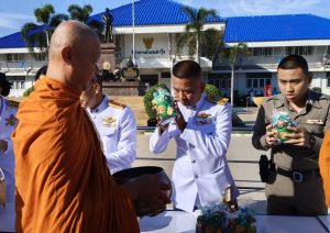 พร้อมข้าราชการตำรวจ สภ.ท่าวุ้ง ร่วมพิธีเจริญพระพุธมนต์และทำบุญตักบาตร ถวายเป็นพระราชกุศล เนื่องในโอกาสวันเฉลิมพระชนมพรรษา สมเด็จพระนางเจ้าสิริกิติ์ พระรมราชินีนาถพระบรมราชชนนีพันปีหลวง