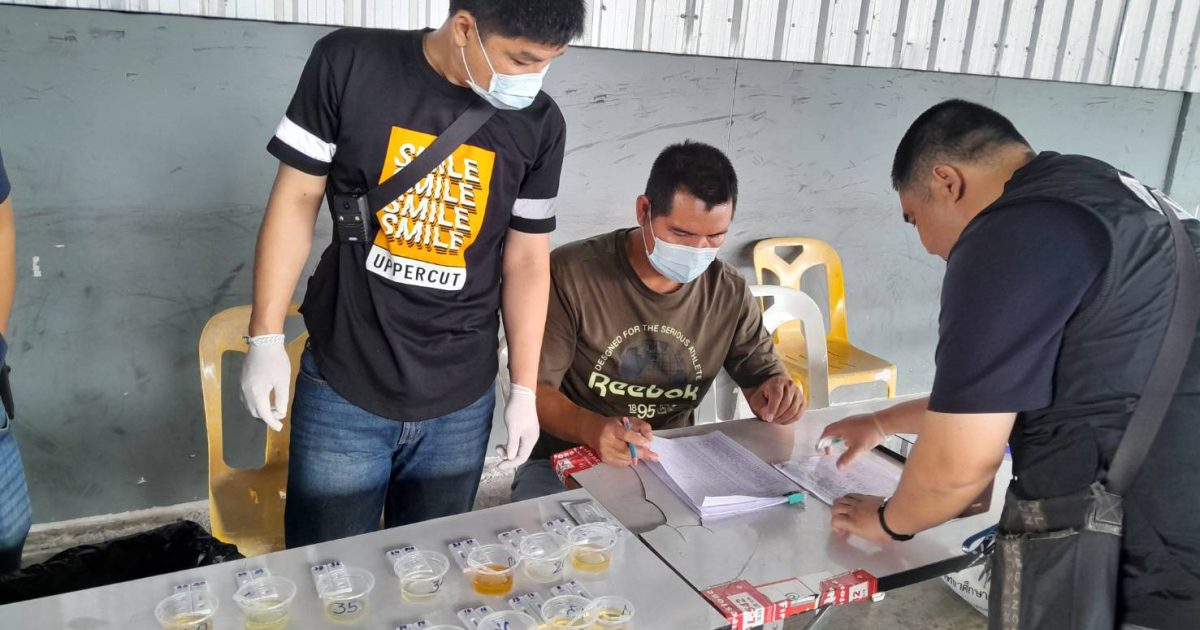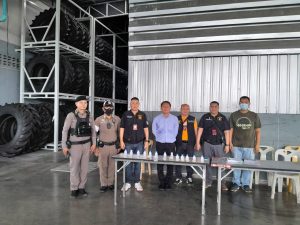 พ.ต.ต.อุดมศักดิ์ พิพัฒน์วรสกุล สว.สส.สภ.ท่าวุ้ง,ร.ต.ท.ยุทธนา สาคร รอง สว(ป.)สภ.ท่าวุ้ง ท่าวุ้ง 20 พร้อมกำลังเจ้าหน้าที่ชุดสืบสวน,สายตรวจ จยย.สายตรวจจราจรร่วมกันตรวจหาสารเสพติดในสถานประกอบการ ณ ศูนย์ให้บริการยางคอกพิท สาขาท่าวุ้ง เพื่อค้นหาผู้เสพ ผู้ใช้ยาเสพติด