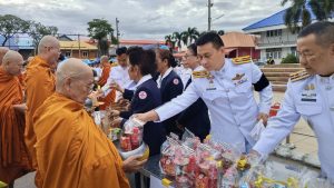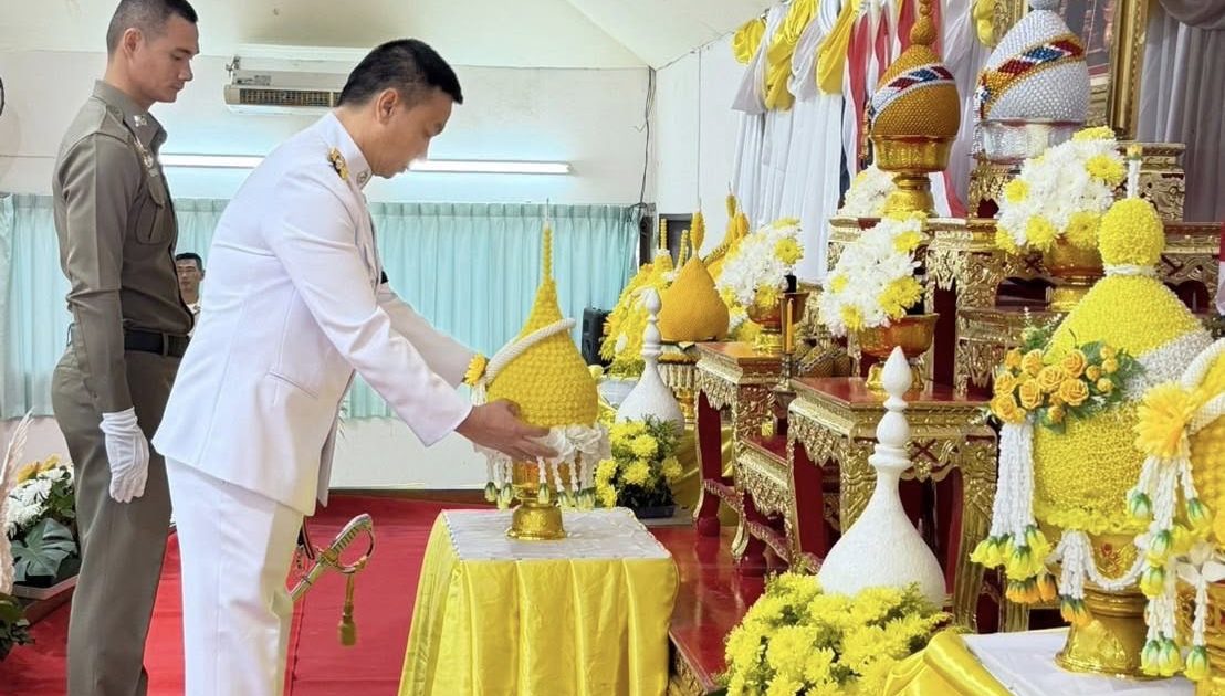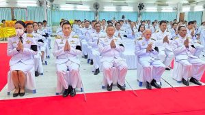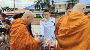 พร้อมข้าราชการตำรวจ สภ.ท่าวุ้ง ร่วมพิธีเจริญพระพุทธมนต์ ทำบุญตักบาตรถวายพระราชกุศลและวางพานพุ่มดอกไม้ถวายสักการะ เนื่องในวันคล้ายพระบรมราชสมภพ พระบามสมเด็จพระบรมชนกาธิเบศร มหาภูมิพลอดุลยเดชมหาราช บรมนาถบพิตรวันชาติ และวันพ่อแห่งชาติ 5 ธันวาคม 2568