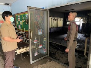 15 ม.ค.2568 เวลา 19.30 น. พนักงานสอบสวน ตรวจที่เกิดเหตุเพลิงไหม้ อาคารศูนย์พัฒนาเด็กเล็กเทศบาลตำบลท่าวุ้ง ม.2 ต.ท่าวุ้ง อ.ท่าวุ้ง จ.ลพบุรี