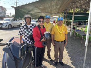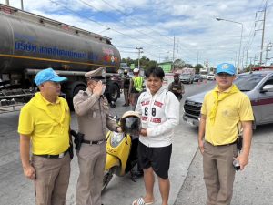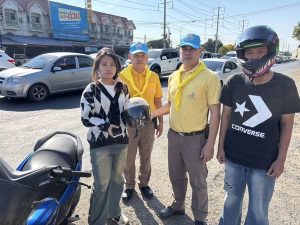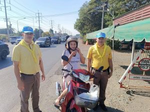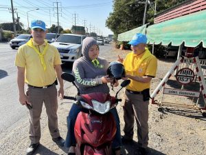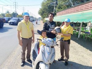 ดำเนินโครงการจิตอาสา สวมหมวกนิรภัยปลอดภัย มอบหมวกนิรภัยให้แก่ประชาชน จำนวน 7 ราย ณ บริเวณจุดตรวจบริการประชาชน ต. บางงา อ .ท่าวุ้ง จ.ลพบุรี