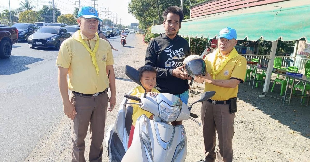ดำเนินโครงการจิตอาสา สวมหมวกนิรภัยปลอดภัย มอบหมวกนิรภัยให้แก่ประชาชน จำนวน 7 ราย ณ บริเวณจุดตรวจบริการประชาชน ต. บางงา อ .ท่าวุ้ง จ.ลพบุรี