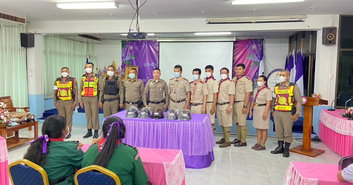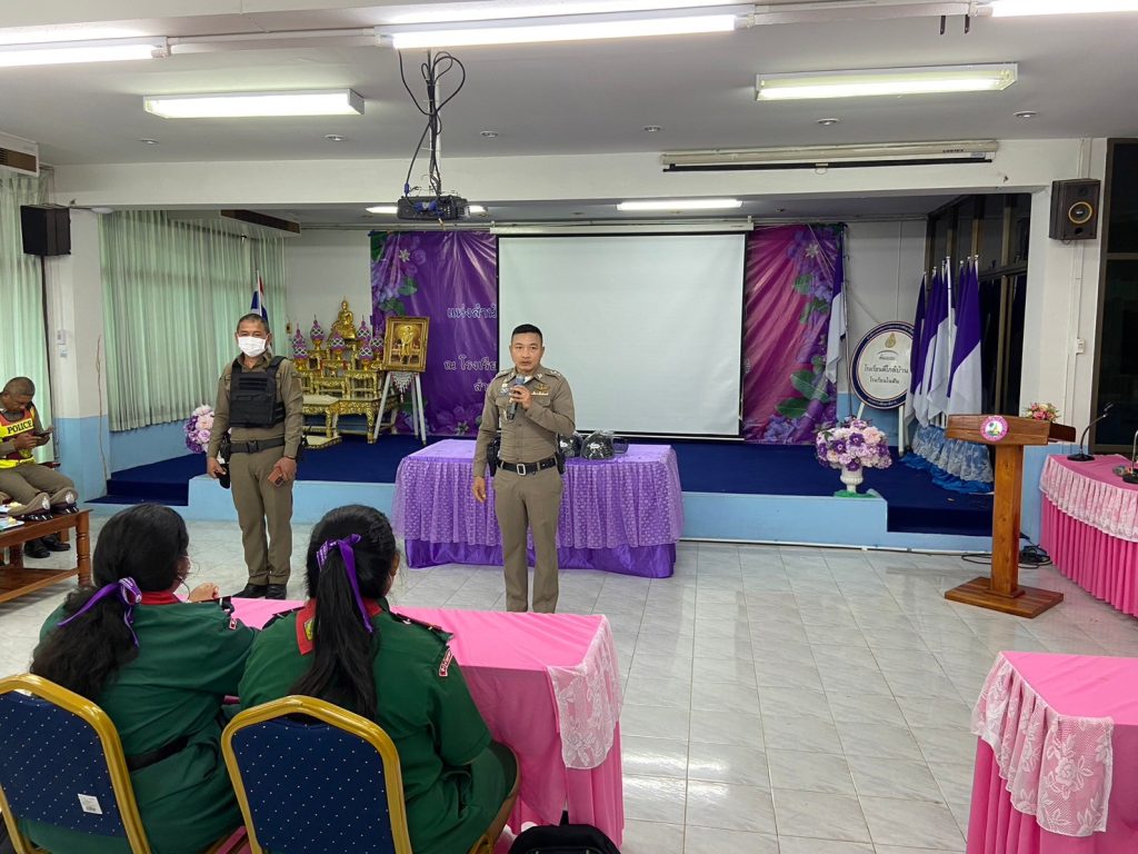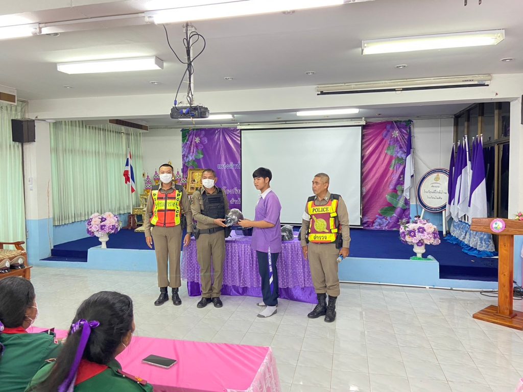 พร้อมด้วยร้อยเวร 2-0 และกำลังจราจร ว.4 โครงการ รณรงค์เยาวชนขับขี่ปลอดภัย พร้อมให้ความรู้เกี่ยวกับการป้องกันอุบัติเหตุและกฎหมายจราจร พร้อมมอบหมวกนิรภัย ให้กับนักเรียน โรงเรียนท่าวุ้งวิทยาคาร