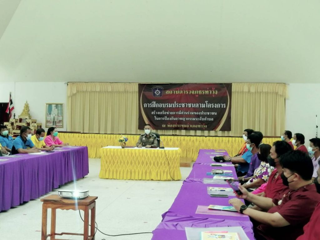 พ.ต.อ.วิษณุรักษ์ พรหมเมศร์ ผกก.สภ.ท่าวุ้ง ,พ.ต.ท.ณัฐพงษ์ อินทรลักษณ์ รอง ผกก.ป. สภ.ท่าวุ้ง และเจ้าหน้าที่ตำรวจ จัดให้มีการฝึกอบรมประชาชนตามโครงการสร้างเครือข่ายการมีส่วนร่วมของประชาชนในการป้องกันอาชญากรรมระดับตำบล ณ ห้องประชุมอำเภอท่าวุ้ง